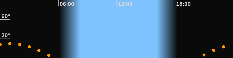 | Untergang | 05:36 Uhr im Südwesten (αAz = 243,5°) |