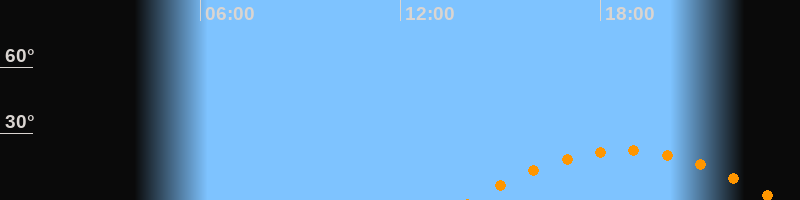 | Höchster Stand (Kulmination) | 18:43 Uhr (h = 22,4°) |