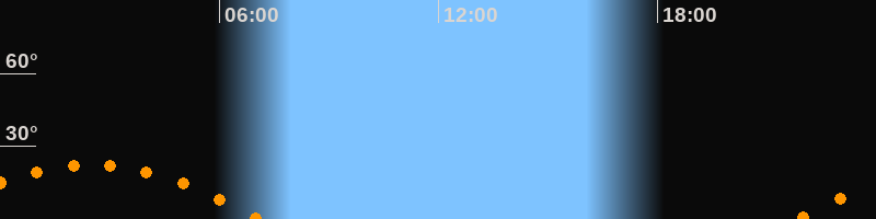 | Untergang | 07:06 Uhr im Südwesten (αAz = 243,5°) |