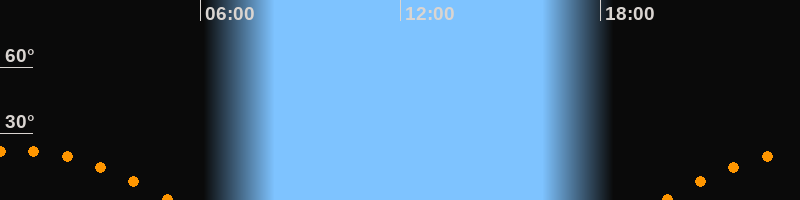 | Untergang | 05:08 Uhr im Südwesten (αAz = 243,5°) |