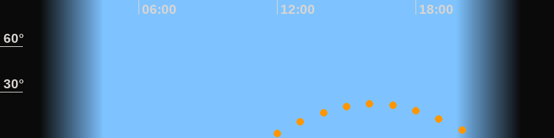 | Aufgang | 11:32 Uhr im Südosten (αAz = 116,5°) |
