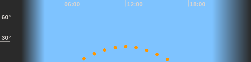 | Höchster Stand (Kulmination) | 11:57 Uhr (h = 22,4°) |