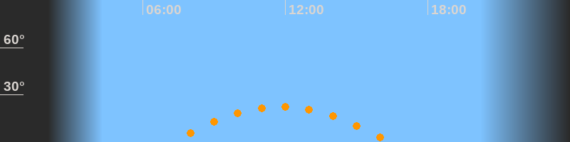 | Untergang | 16:25 Uhr im Südwesten (αAz = 243,5°) |