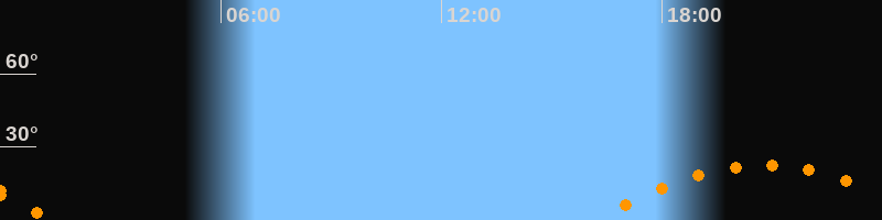 | Untergang | 01:27 Uhr im Südwesten (αAz = 243,5°) |
