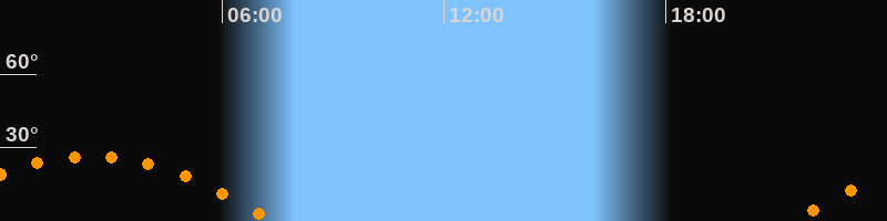 Höchster Stand (Kulmination)02:27 Uhr (h = 26,5°)
