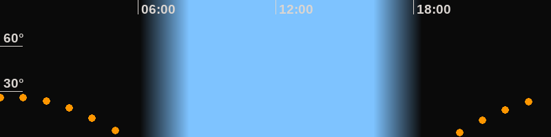 Höchster Stand (Kulmination)00:33 Uhr (h = 26,5°)