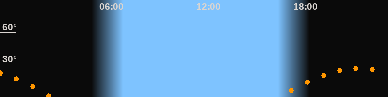 Höchster Stand (Kulmination)22:11 Uhr (h = 26,5°)