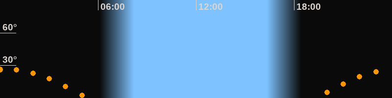 Höchster Stand (Kulmination)00:18 Uhr (h = 26,5°)
