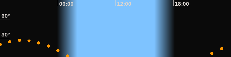 Höchster Stand (Kulmination)02:18 Uhr (h = 26,5°)