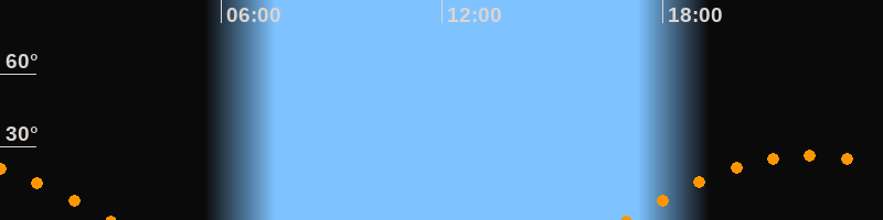 Höchster Stand (Kulmination)21:56 Uhr (h = 26,5°)