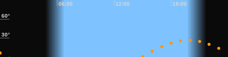 Höchster Stand (Kulmination)19:47 Uhr (h = 26,5°)