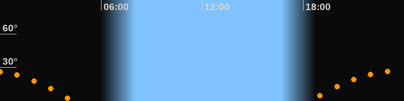 Höchster Stand (Kulmination)23:21 Uhr (h = 26,5°)