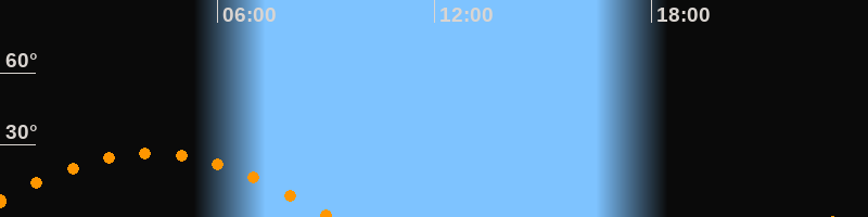 Höchster Stand (Kulmination)04:10 Uhr (h = 26,5°)