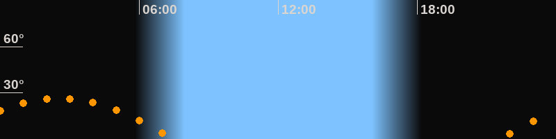 Höchster Stand (Kulmination)02:32 Uhr (h = 26,5°)
