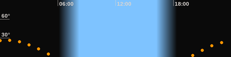 Höchster Stand (Kulmination)00:36 Uhr (h = 26,5°)