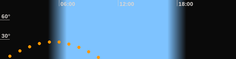 Höchster Stand (Kulmination)05:24 Uhr (h = 26,5°)