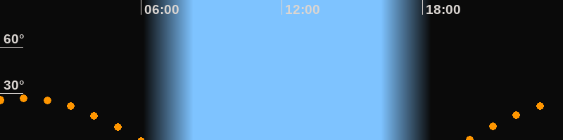 | Aufgang | 19:54 Uhr im Osten (αAz = 108,7°) |