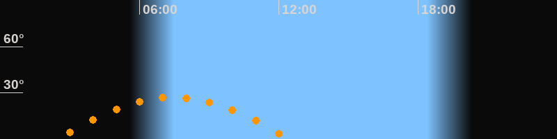 | Höchster Stand (Kulmination) | 07:27 Uhr (h = 27,1°) |