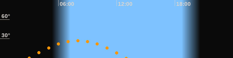 | Höchster Stand (Kulmination) | 07:59 Uhr (h = 27,1°) |
