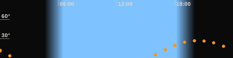 | Untergang | 01:29 Uhr im Westen (αAz = 251,3°) |
