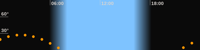 | Höchster Stand (Kulmination) | 02:30 Uhr (h = 27,1°) |