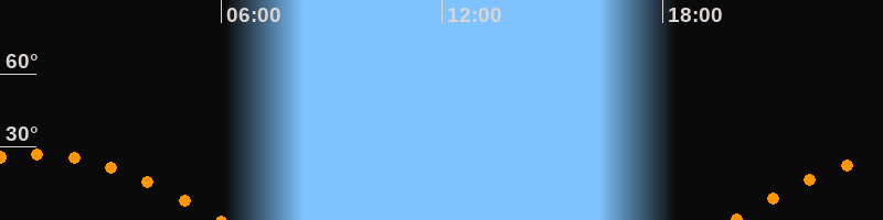 | Aufgang | 19:52 Uhr im Osten (αAz = 108,7°) |