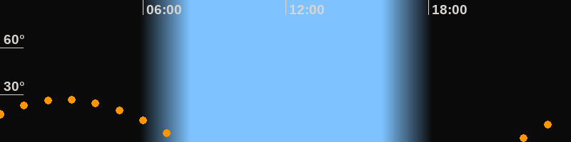 | Höchster Stand (Kulmination) | 02:43 Uhr (h = 27,1°) |