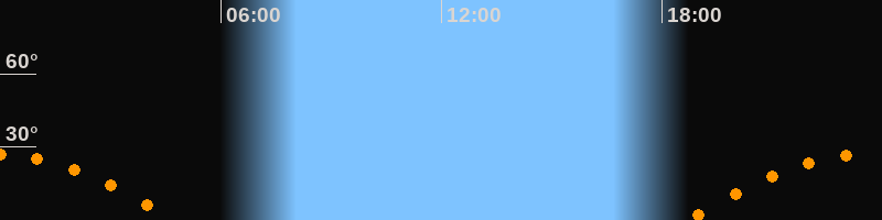 | Aufgang | 18:40 Uhr im Osten (αAz = 108,7°) |