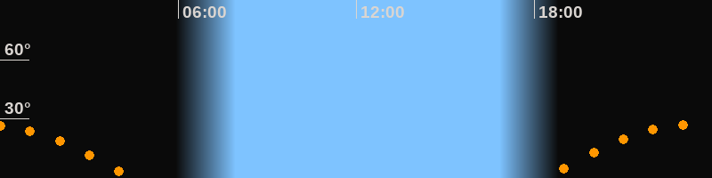 | Aufgang | 18:20 Uhr im Osten (αAz = 108,7°) |