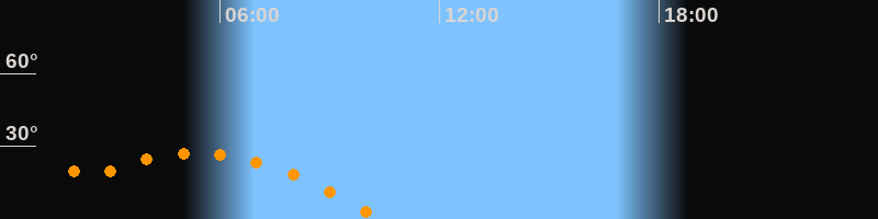 | Untergang | 10:23 Uhr im Westen (αAz = 251,3°) |