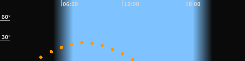| Höchster Stand (Kulmination) | 08:16 Uhr (h = 27,1°) |