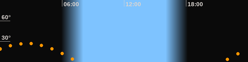 | Höchster Stand (Kulmination) | 02:33 Uhr (h = 27,1°) |