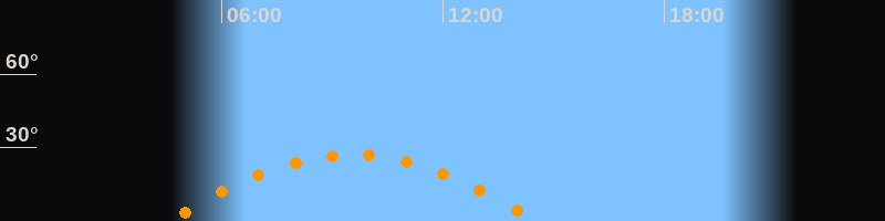 | Höchster Stand (Kulmination) | 09:32 Uhr (h = 27,1°) |