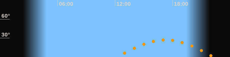 | Untergang | 22:18 Uhr im Westen (αAz = 251,3°) |