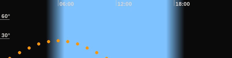 | Höchster Stand (Kulmination) | 05:59 Uhr (h = 27,1°) |