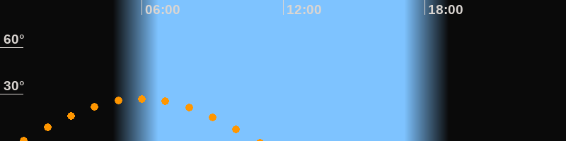 | Höchster Stand (Kulmination) | 05:56 Uhr (h = 27,1°) |