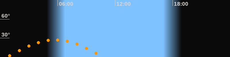| Höchster Stand (Kulmination) | 05:44 Uhr (h = 27,1°) |