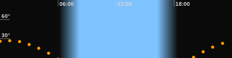 | Aufgang | 19:47 Uhr im Osten (αAz = 108,7°) |