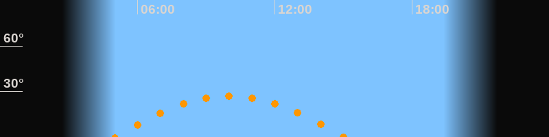 | Höchster Stand (Kulmination) | 10:00 Uhr (h = 27,1°) |