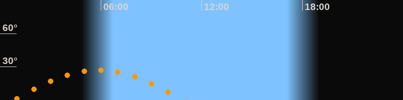 | Höchster Stand (Kulmination) | 05:50 Uhr (h = 27,1°) |