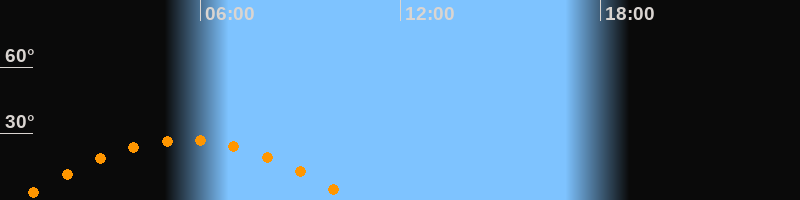 | Höchster Stand (Kulmination) | 05:34 Uhr (h = 27,1°) |