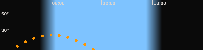 | Höchster Stand (Kulmination) | 06:10 Uhr (h = 27,1°) |