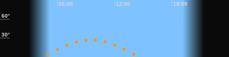 | Höchster Stand (Kulmination) | 09:32 Uhr (h = 27,1°) |