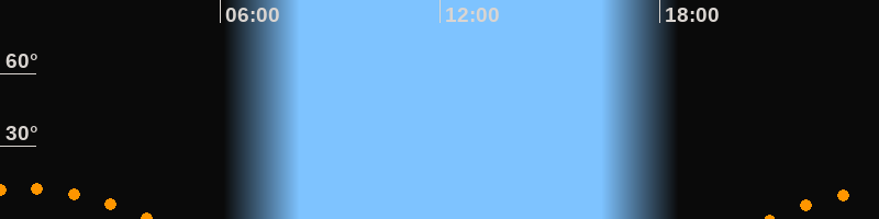 | Höchster Stand (Kulmination) | 00:30 Uhr (h = 12,6°) |