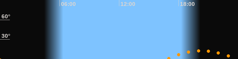 | Untergang | 23:51 Uhr im Südwesten (αAz = 225,8°) |