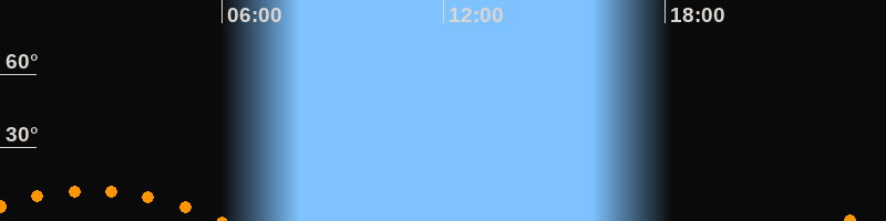 | Untergang | 06:01 Uhr im Südwesten (αAz = 225,8°) |