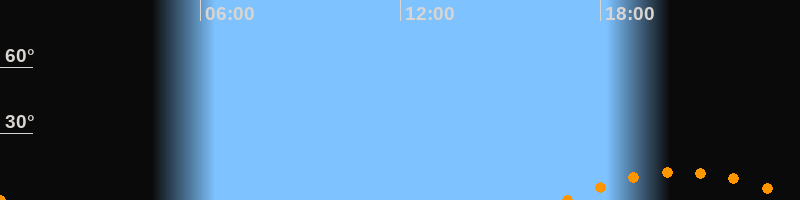 | Untergang | 23:59 Uhr im Südwesten (αAz = 225,8°) |