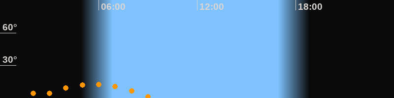 | Untergang | 09:15 Uhr im Südwesten (αAz = 225,8°) |