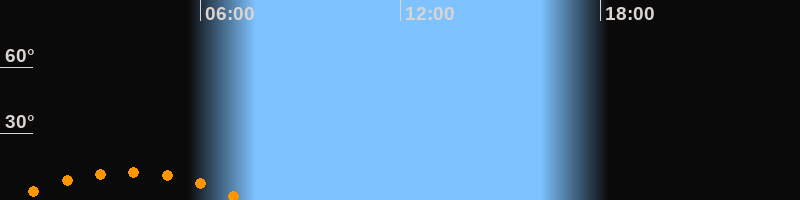 | Aufgang | 00:13 Uhr im Südosten (αAz = 134,2°) |