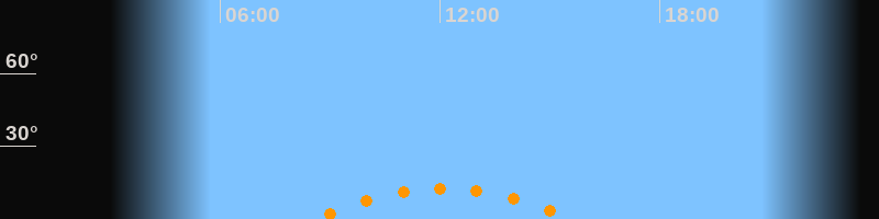 | Höchster Stand (Kulmination) | 12:05 Uhr (h = 12,6°) |